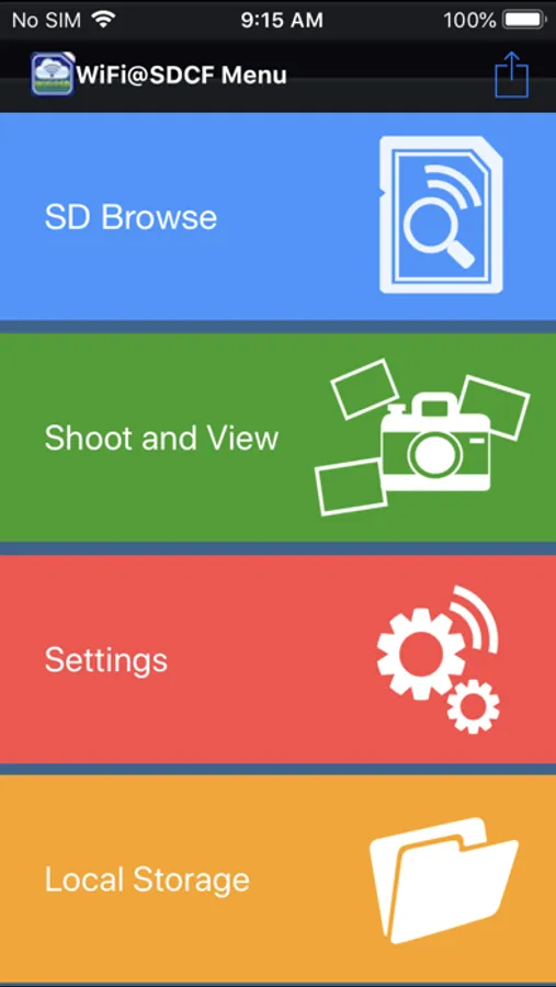 WiFi@SDCF is an app designed for use with memory cards with built-in WiFi functions. Users can access the WiFi@SDCF memory card using a mobile phone or tablet with a WiFi connection and use the WiFi@SDCF app to browse the photos, music, videos, and other file formats in the camera.