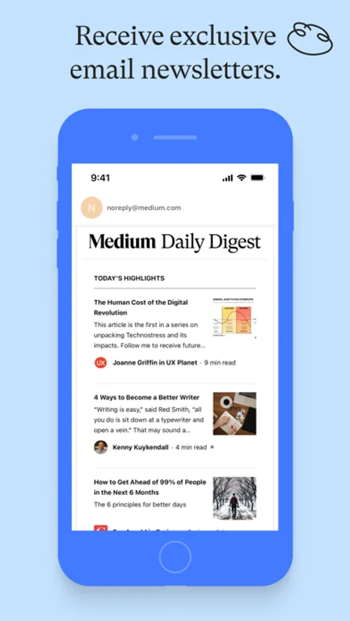 + Enjoy a minimal, distraction-free reading experience that keeps the focus on quality writing.
