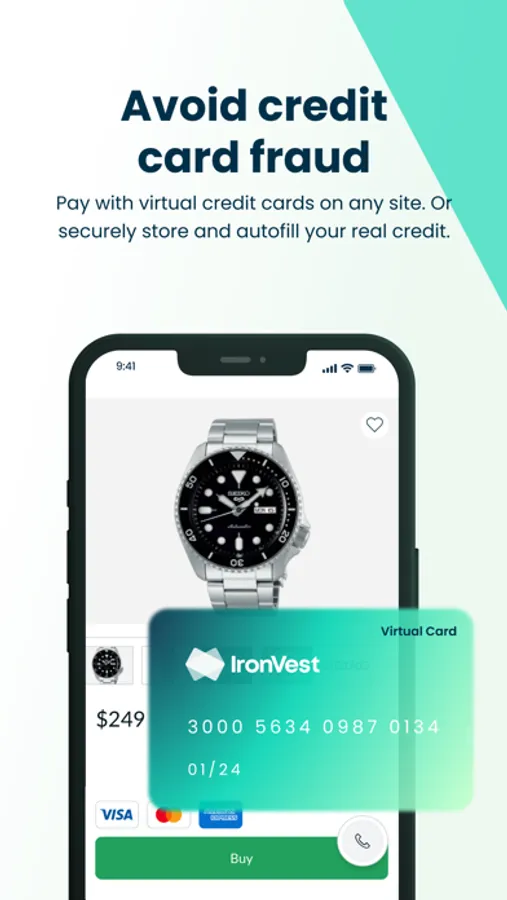 IronVest is your all-in-one, security and privacy wallet that goes beyond any existing solutions to protect access to your accounts, secure your credit cards, and protect your privacy online with masked email addresses, single-use virtual cards, and masked mobile numbers. Create, protect, and autofill passwords with face biometrics right from your browser.