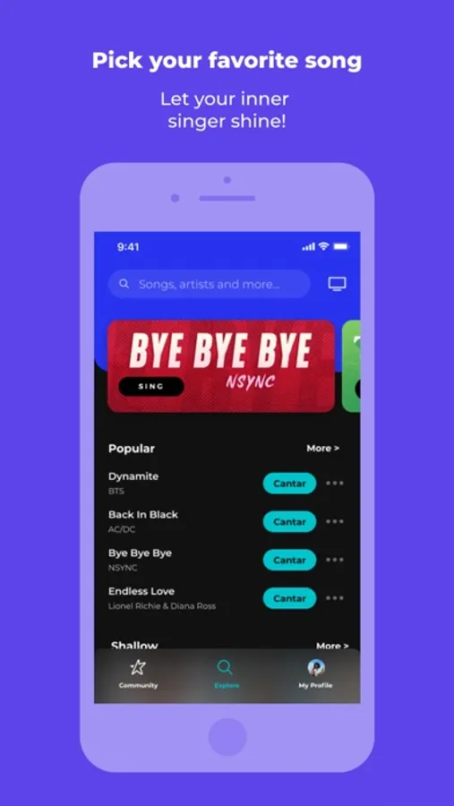 Have fun singing, share your recording, get followers and stand out in our community in Latin America.