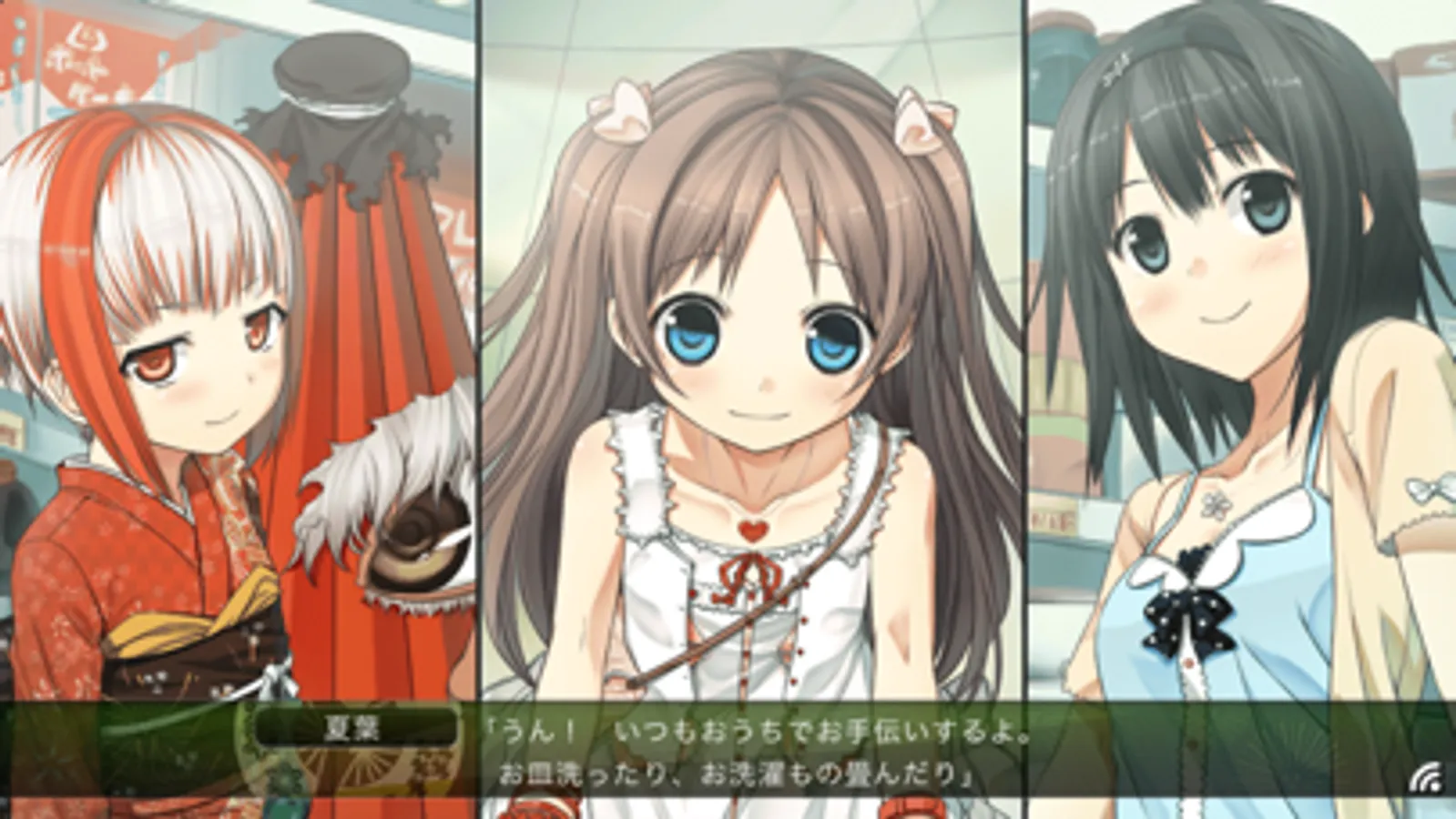 2点タップ : セーブ/ロード/環境設定/タイトルに戻る/ヘルプ/バージョン情報を選択できます。