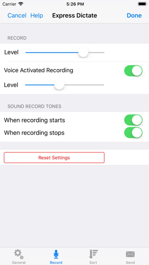 - Optional voice activated recording. When selected Express Dictate only records while you are speaking.