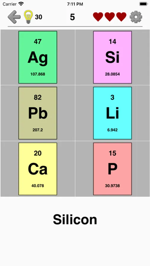 You'll learn the names and symbols of all 118 chemical elements of the Periodic Table with this app - from nitrogen (N) and oxygen (O) to plutonium (Pu) and americium (Am). It is one of the best chemistry games.