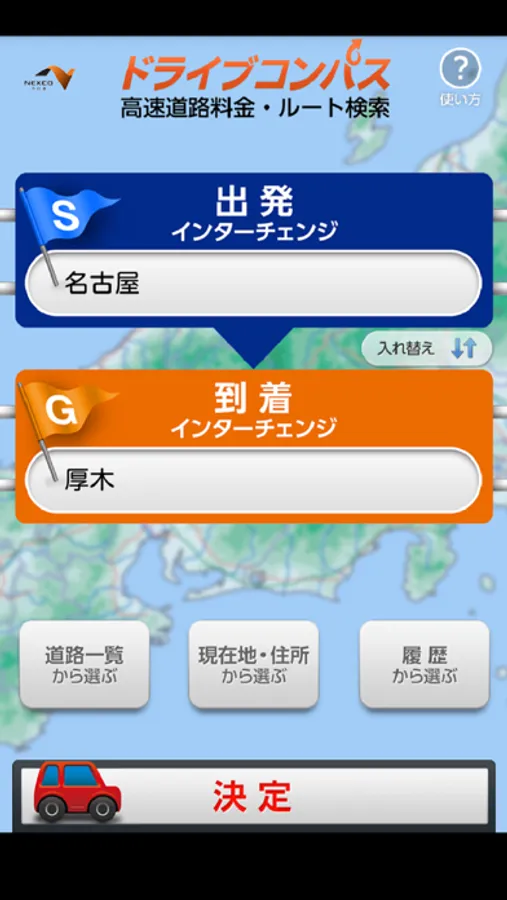ドライブコンパスアプリは、NEXCO中日本が提供する高速道路の経路およびETC割引料金をはじめとした通行料金やSA・PA情報を検索するアプリです。