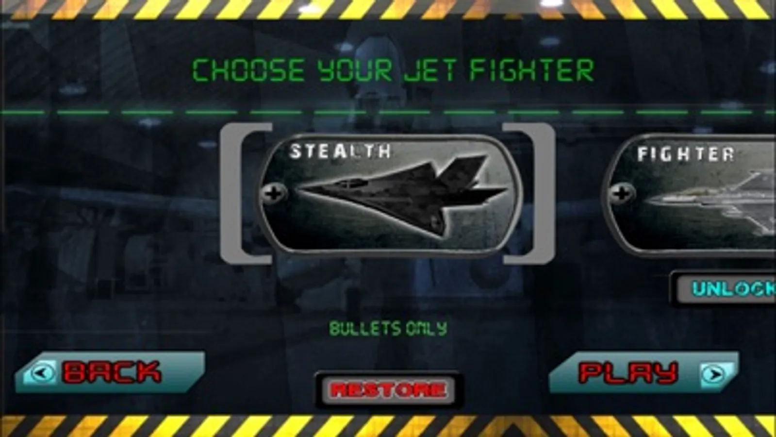 Choose on of the state of the art fighter jets we've built for you, and fight your way through one of the most challenging and exciting war zone on the app store.