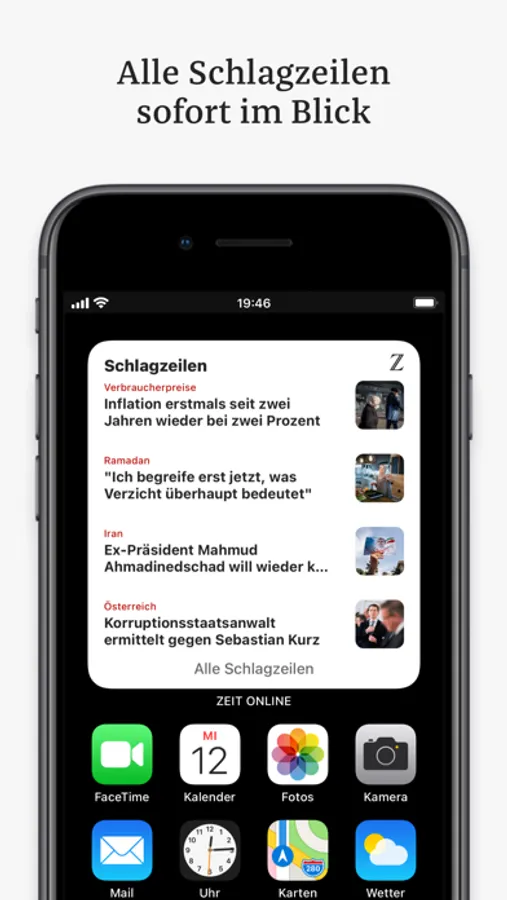 Bleiben Sie auf dem Laufenden – direkt vom Homescreen: Mit unseren Widgets können Sie sich empfohlene Artikel, Schlagzeilen oder unsere aktuell meistgelesenen Artikel anzeigen lassen.
