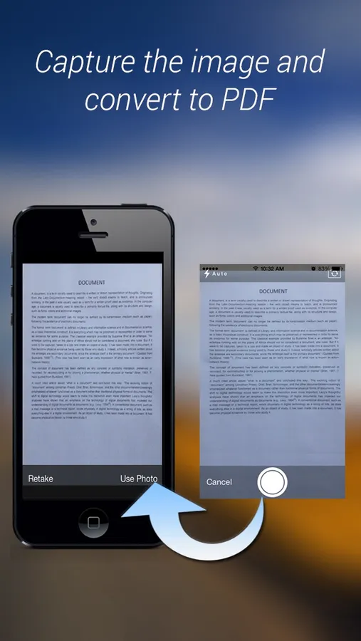 Convert any document, receipt or even a picture to PDF and share it over the cloud.
