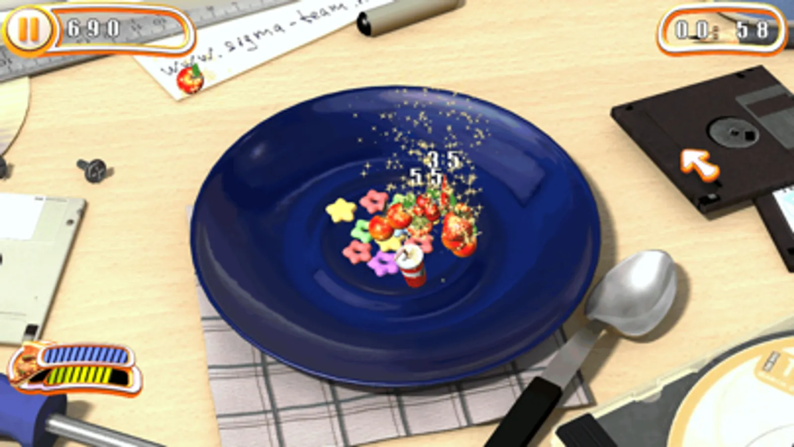 Monsters hide your lunch behind their backs. You need to find identical objects and chase them away from your plate.