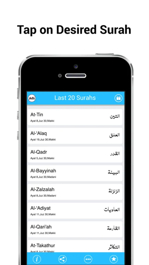 Download this App with new interface and start earning blessings within no time by reciting the last 20 short Surahs of Holy Quran.