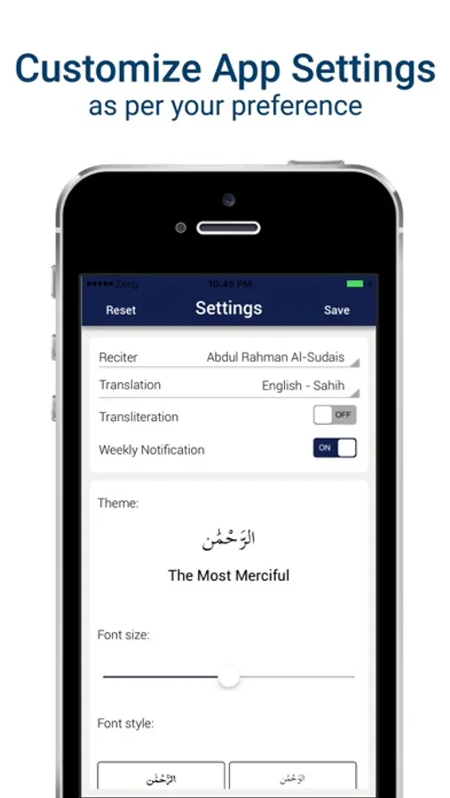 • Soulful recitation in the voices of renowned Reciters Abdul Rahman Al Sudais and Mishray Rashid Al Afsay