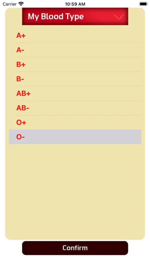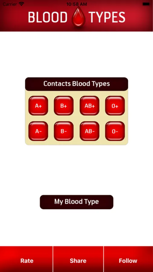 When you first login to the app, click on "My Blood Type" and choose your respective blood type.