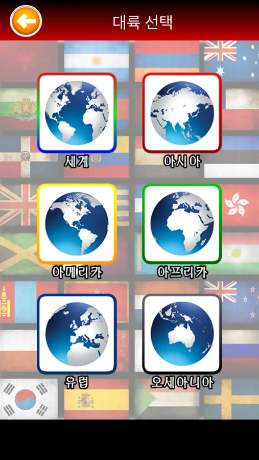 아시아, 아메리카, 아프리카, 유럽, 오세아니아 대륙 별로 국기를 맞춰보세요~
