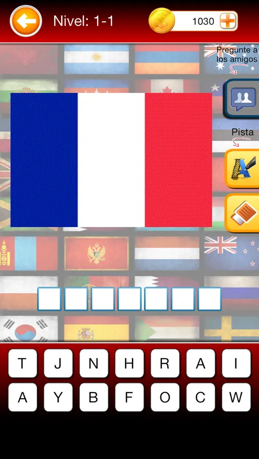 Este juego consiste en adivinar los nombre de los países mirando sus banderas nacionales.
