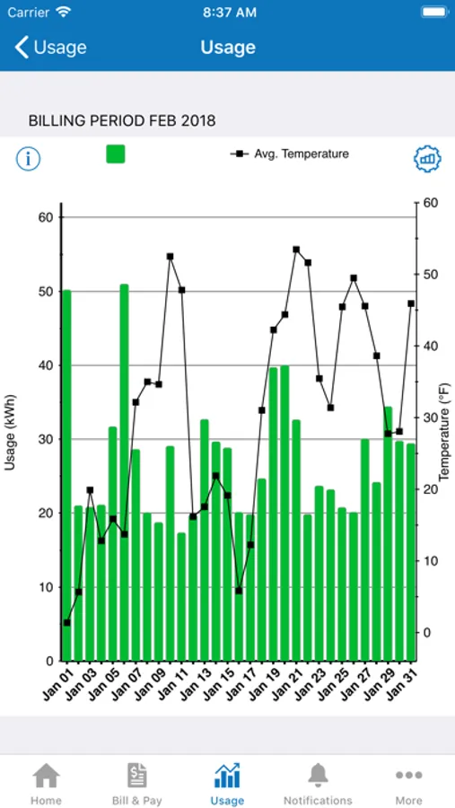 View energy usage graphs to identify high usage trends. Navigate graphs quickly using an intuitive gesture based interface.