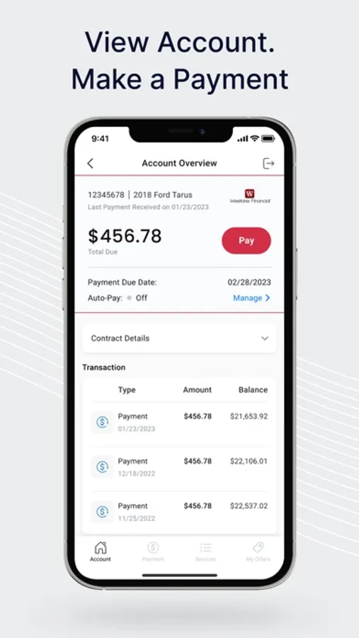 Westlake Financial Services account holders now have access to manage their accounts directly from mobile devices. Westlake mobile application includes features to make a payment, sign up for a recurring payment, access payoff information, and much more!