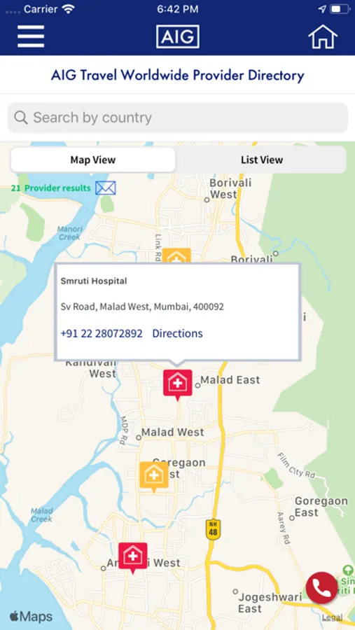 · Provider Directory contains contact information for healthcare providers in various locations around the world with a map view and ability to turn on GPS and locate providers nearby. Members have the option to rate and share comments about the medical provider (feedback will not be made public and will only be shared with AIG Travel).