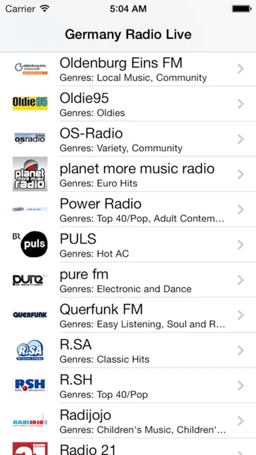 The radio channels included in this Germany Radio Live (Deutschland Deutsch / German Radio) app but not limited to are (some will be added in next update):
