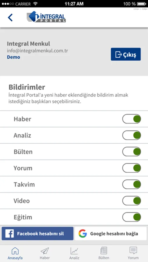 İntegral Portal Uygulaması, analiz departmanının FOREX / BIST / VIOP ile ilgili üretimlerinin paylaşıldığı analiz sitesinin mobil uygulama modeline uygun olarak arındırılmış versiyonudur.