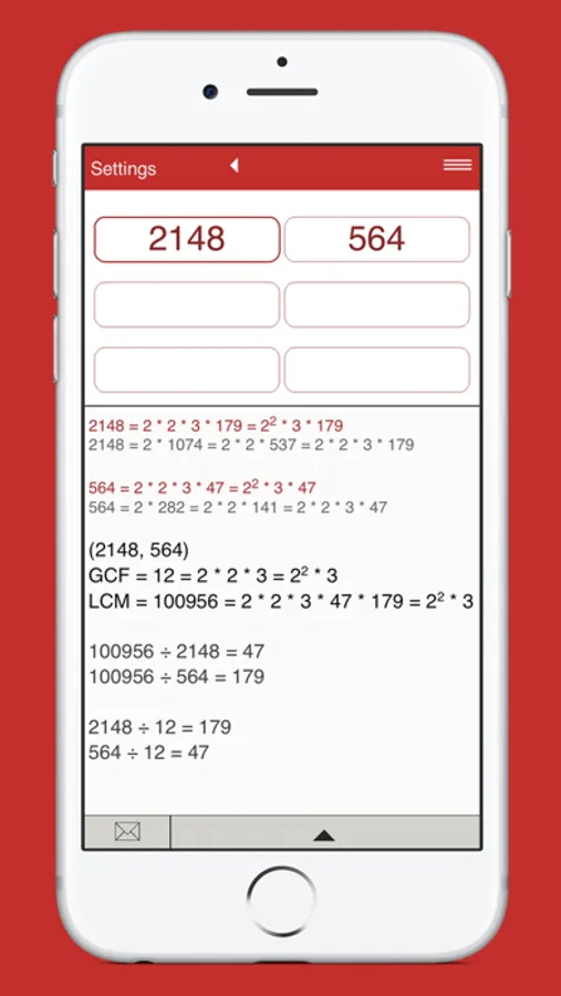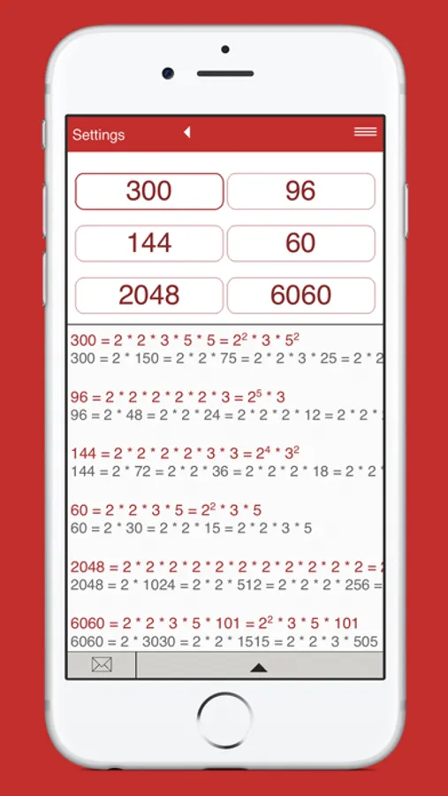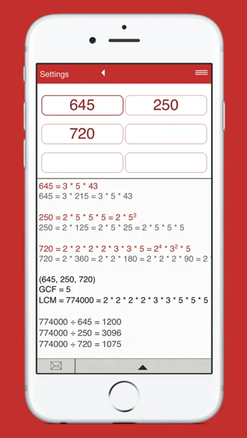 Prime Factor calculator stores History list. So you can easily view and edit your recent calculations.