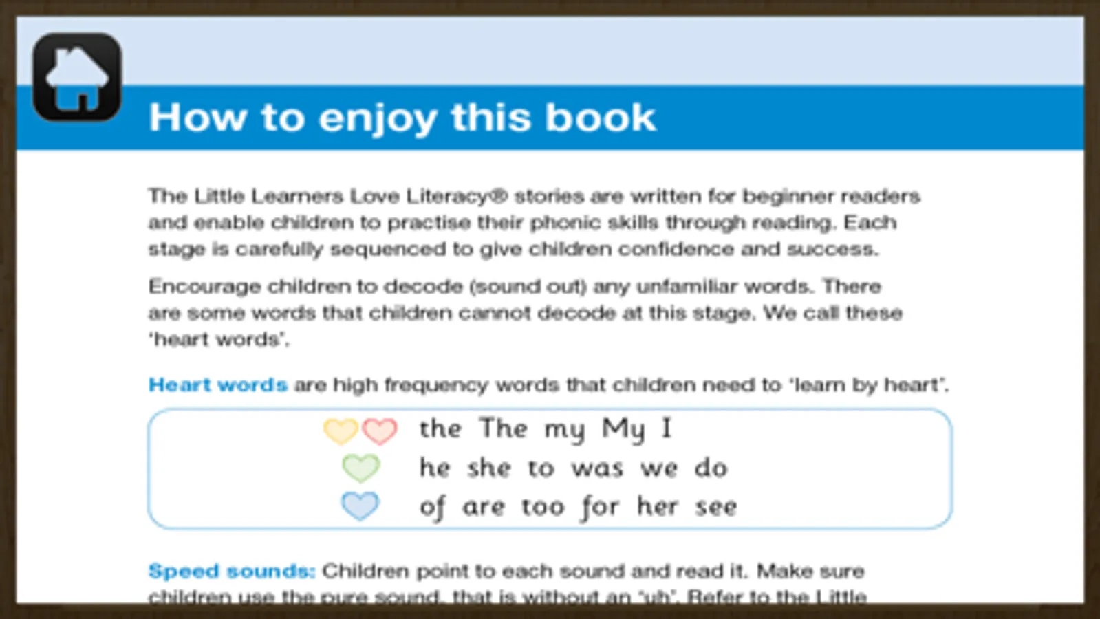 All words, except for Heart Words, in these books can be ‘sounded out’. To do this, children point to each letter or digraph, saying the sounds and then blending the sounds together to read the word.