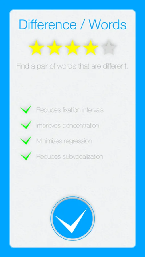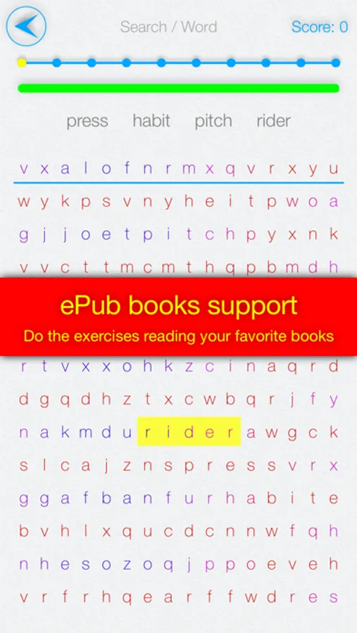 More than 20 exercises to develop your speed reading skills and retention. Some of the exercises support ePub and DJVU books. You can train yourself and read your favorite books at the same time! The application has been translated to 36 languages: English, Spanish, Italian, Portuguese, Russian, French, Chinese, Japanese, Korean, Malaysian, Indonesian, Turkish, German etc!
