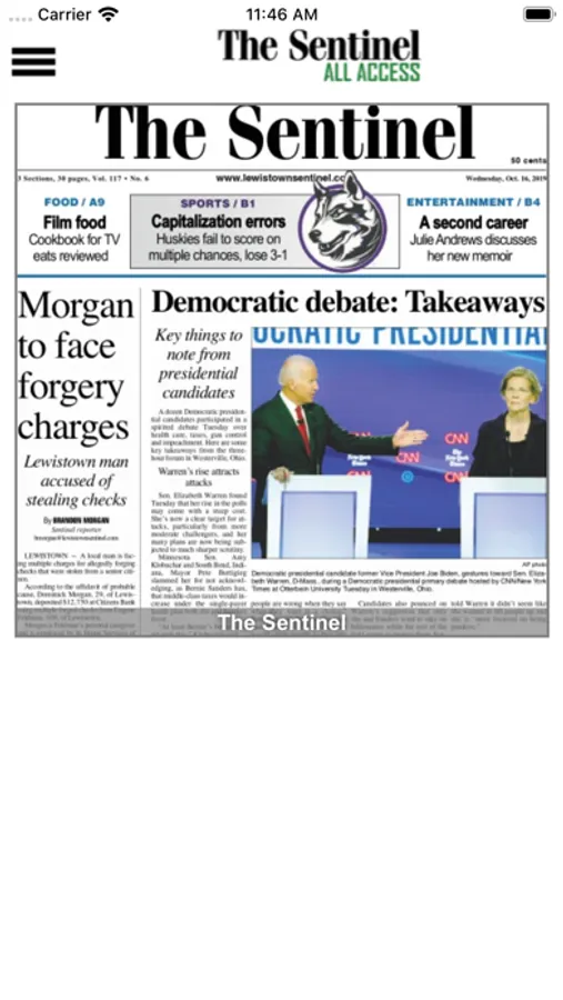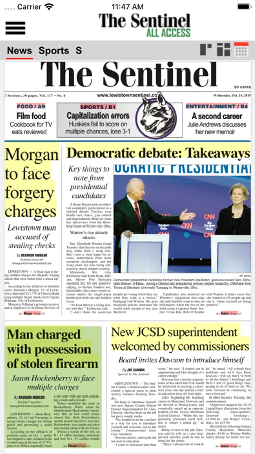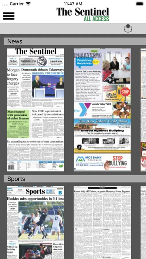Stay on top of news from Lewistown and surrounding areas by receiving the full print version of the The Sentinel on your iPhone or iPad. Every page of every edition is delivered to your device. The Sentinel is the best source for local and national news, sports, weather and features in the Lewistown and Mifflin County area. Download the app to view the printed pages of the newspaper or read headlines and stories along with related photos in a built-in story viewer.