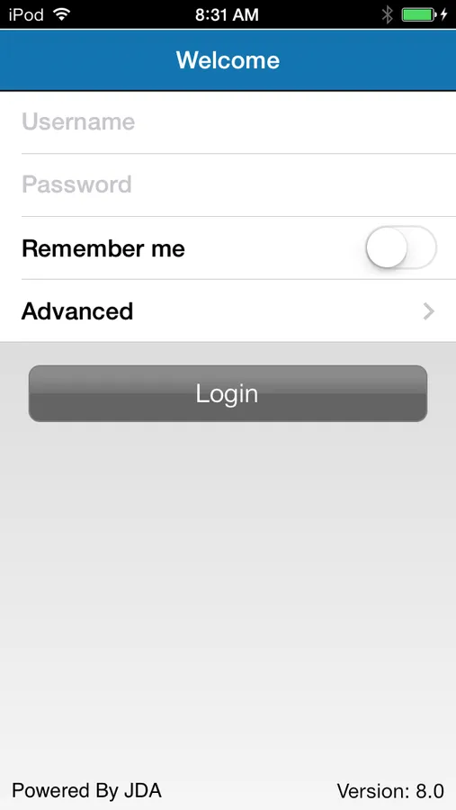 Note: Must hold valid JDA Mobile Framework and JDA Workforce licenses to login to the application. JDA Workforce was formerly RedPrairie Workforce Management for Retail.