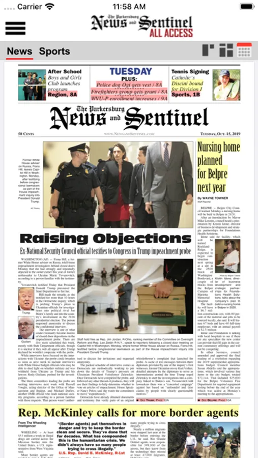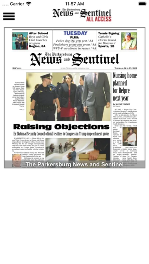 Stay on top of news from Parkersburg and surrounding areas by receiving the full print version of The Parkersburg News and Sentinel on your iPhone or iPad. Every page of every edition is delivered to your device. The News and Sentinel is the best source for local and national news, sports, weather and features in the Parkersburg area. Download the app to view the printed pages of the newspaper or read headlines and stories along with related photos in a built-in story viewer.
