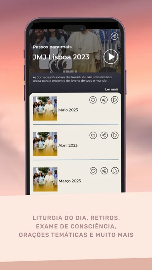 Além destes "Passos Diários", temos também para ti propostas de exame do dia, de oração pelas intenções do Papa Francisco, rosários, peregrinações e vários retiros e propostas para momentos especiais.