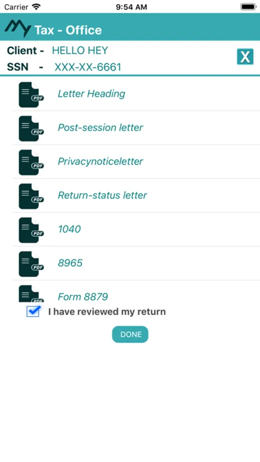 Client can view their prepared tax documents.