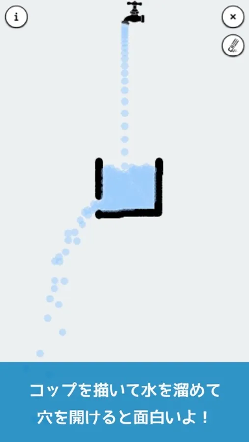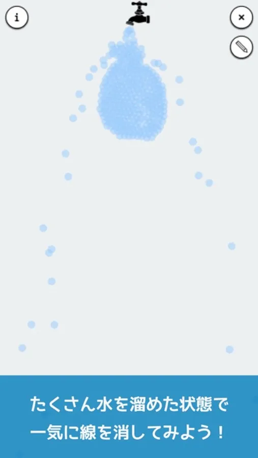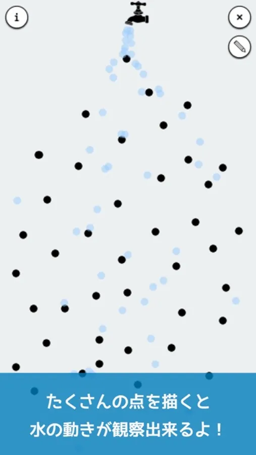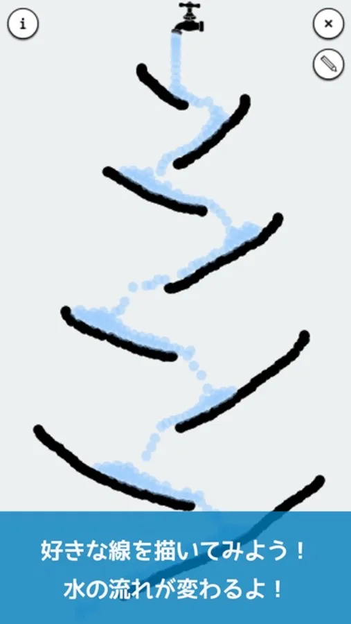From the tap, which is displayed on the screen, the water comes flowing out to infinity. You write a line freely, let's look forward to looking at the water flowing over the line!