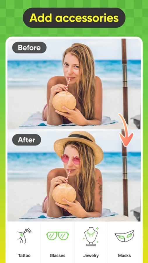 • Decorate your selfies with artistic tattoos and additional accessories.