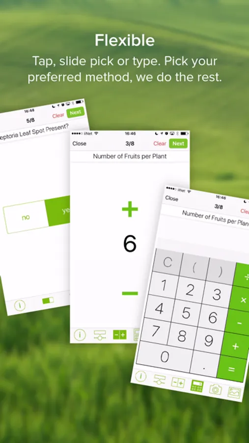 Every scouting project is different. With tap, slide, pick or type options to choose from, customise the crop assessment methods to suit the various scouting projects and assign them to scouts, wherever they are.*