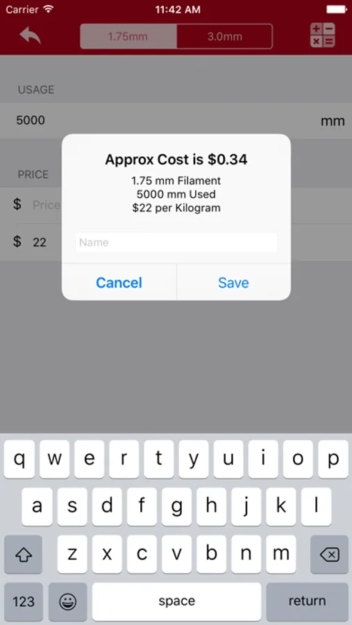 Use this app to quickly and easily work out cost for your 3D printed projects.