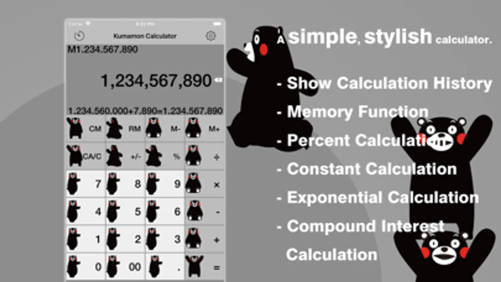 It is a calculator of the calculation Kumamon addition, subtraction , multiplication , division , percentages , can be .