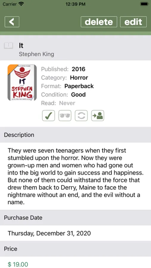 Books Collector helps you keep track of your library, especially in those moments at the store where everything is on sale and you are not sure if you already have a copy of that paperback you just found in the dollar bin.