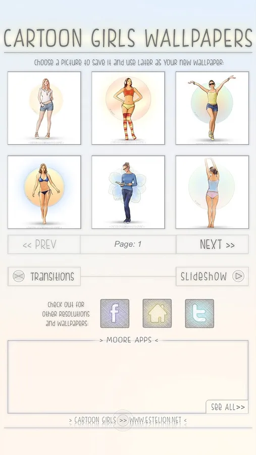 Every picture has been specially prepared for your device and maintains high quality in either portrait or landscape position (iPad case). All wallpapers are already built-in application, so you don't need an internet connection to use this app! Version 1.0.0 includes 12 images of female cartoon characters.