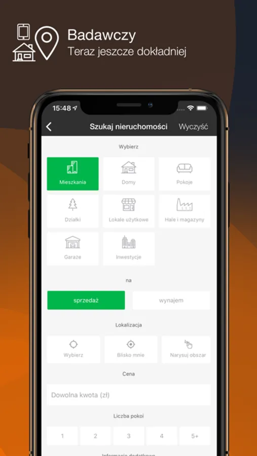 • Możliwość wyszukiwania ofert przy użyciu wszystkich parametrów z Otodom.