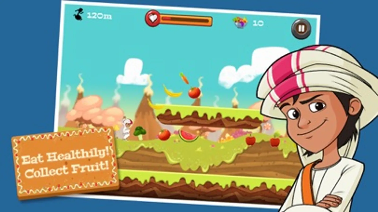 Download the app to run, jump and glide as you dodge minions and collect healthy foods over three exciting levels to activate power boosts and avoid being caught by the sugar monster. Based on the Mansour Cartoon series, Mansour is transported into a dream world after choosing the wrong snack and finds himself running away from a giant sugar monster.