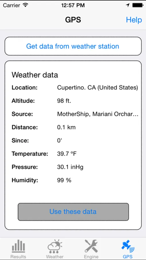 In order to get the weather values, the application can use the location service (GPS or WiFi) to obtain the position and altitude, and the network connection to get the temperature, pressure and humidity from the nearest weather station. Nevertheless, the application can run without GPS, WiFi and internet connection, in this case, the user has to give the weather data.