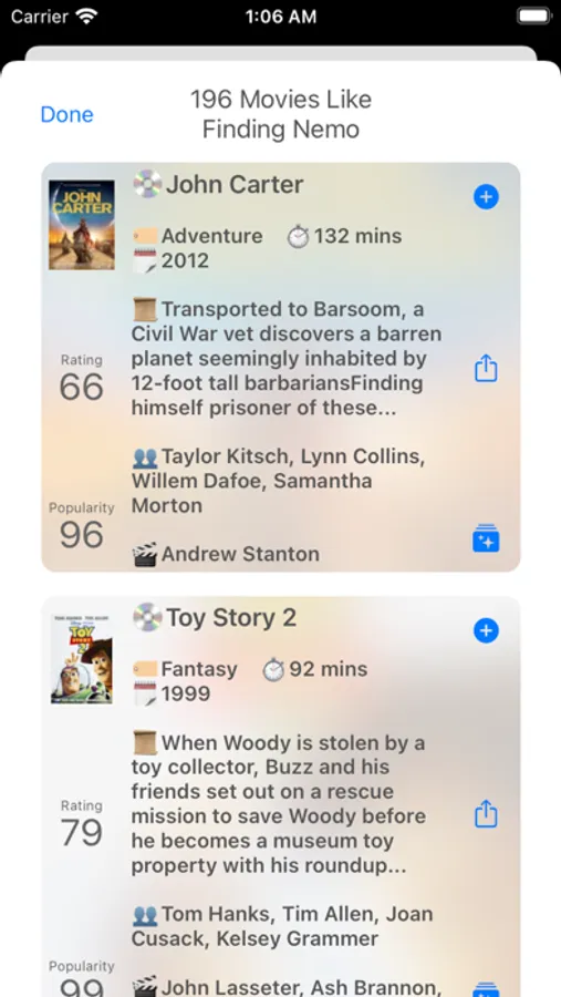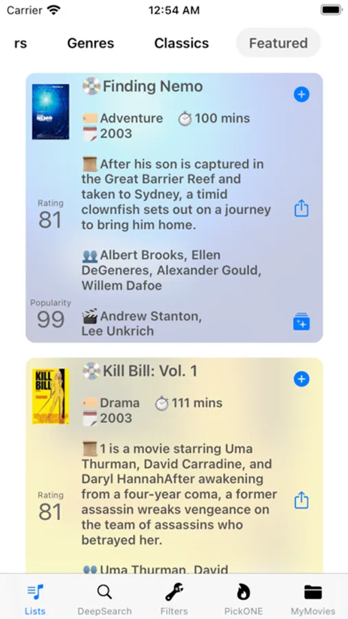 You can also discover movies through genre, epic lists, popularity, rating and more. There is also a search based on titles, directors and actors. Keep swiping to explore similar movies without tapping on a million buttons.