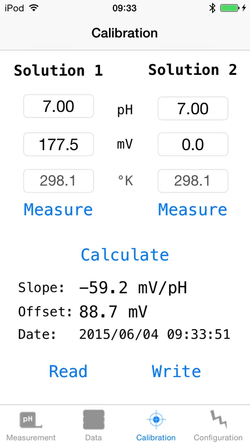 - Read the last calibration of the pH-Meter