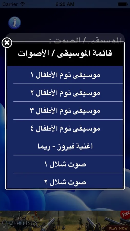 التطبيق يحتوى على ١٦ صوت مناسب جدا لمساعدة طفلك على الاسترخاء و النوم بواسطة موسيقى ناعمة و أصوات طبيعية هادئة.