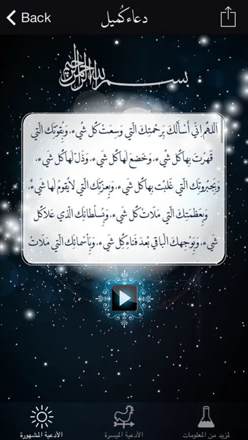 الأدعية المشهورة كاملة النص والصوت لإمكانية الإستماع والقراءة معاً, بالإضافة الى امكانية الإستماع والهاتف مغلق