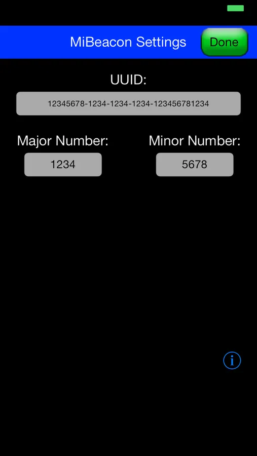 MiBeacon allows you to enter your desired UUID, Major, and Minor numbers on the settings screen.
