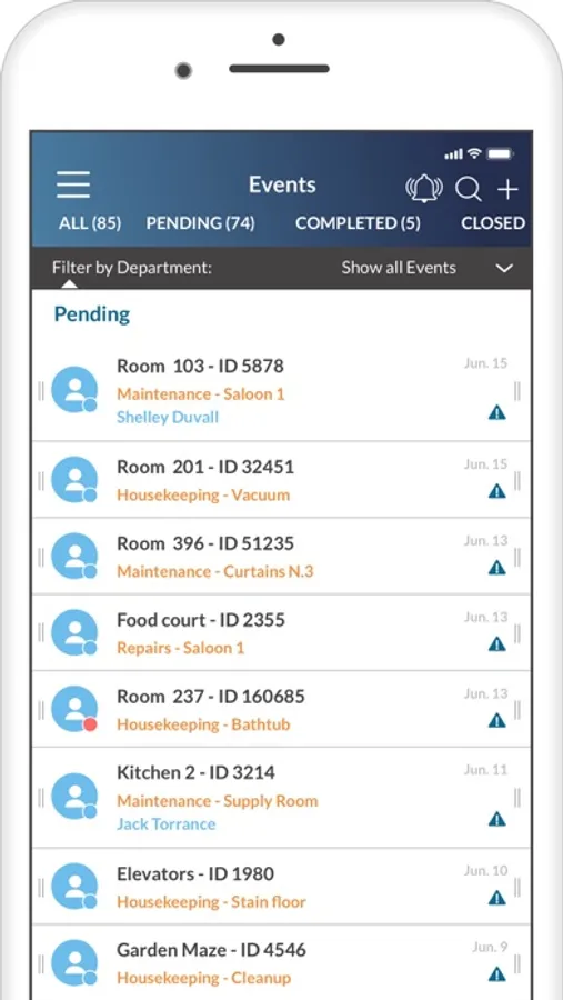 In addition, Nuvola will help your operation run smoother. Users will be notified in real-time when service requests are pending and awaiting for a team member to take action. The user can view all the details related to the service request including the guest's information. The user can then comment and change the status of an event when the task is completed.