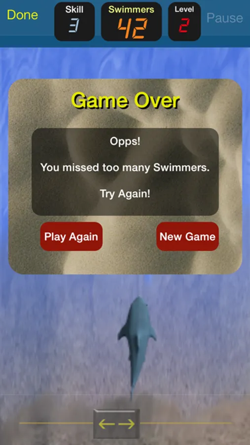 One Shot - if you miss 1 swimmer in any level, the game is over.