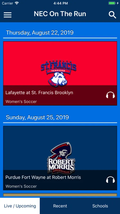 NEC on the Run is the official app of NECFrontRow.com, the state-of-the-art digital network of the Northeast Conference. Watch live events and on-demand content on your iPhone and iPad with FREE, one-click access to your favorite NEC schools and teams. The app gives fans inside access to the NEC and its student-athletes on the field, in the classroom, across campus, and in the community.
