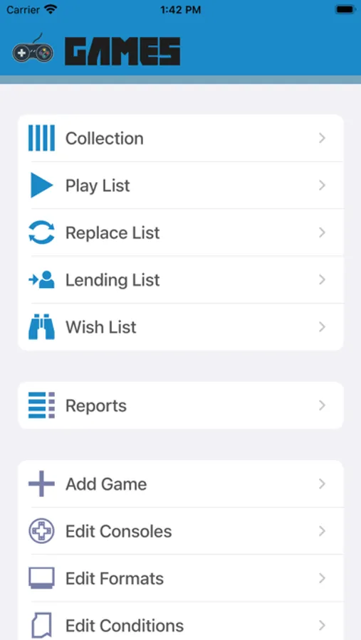 Video Games Collector helps you keep track of your collection, especially in those moments at the store or the flea market where everything is on sale and you are not sure if you already have a copy of that cartridge you just found in the dollar bin.