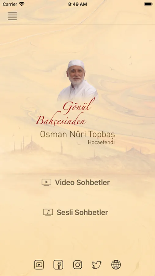 İslam ve İhsan uygulaması Osman Nuri Topbaş Hocaefendi’nin video ve sesli sohbetlerini içermektedir.